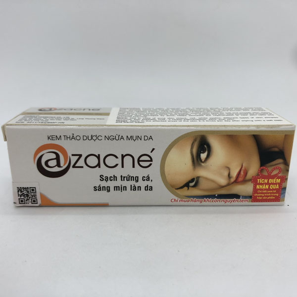 Azacne- Kem trị mụn có tác dụng thu nhỏ lại ổ loét, làm liền sẹo, chốc lỡ, mụn trứng cá, mụn đầu đinh, giúp tẩy sạch các loại mụn dạng không viêm và dạng viêm.