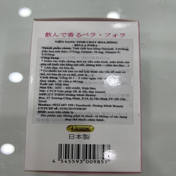 Thành phần Viên nang tinh chất hoa hồng Bella Fora