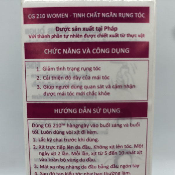 Hướng dẫn sử dụng Tinh chất ngăn rụng tóc dành cho nữ CG 210 Women