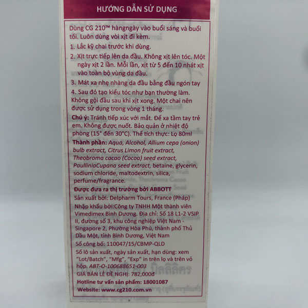 - Dùng CG 210 Women vào buổi sáng và tối. Không gội đầu sau khi xịt xong. Một chai nên sử dụng trong vòng 1 tháng.