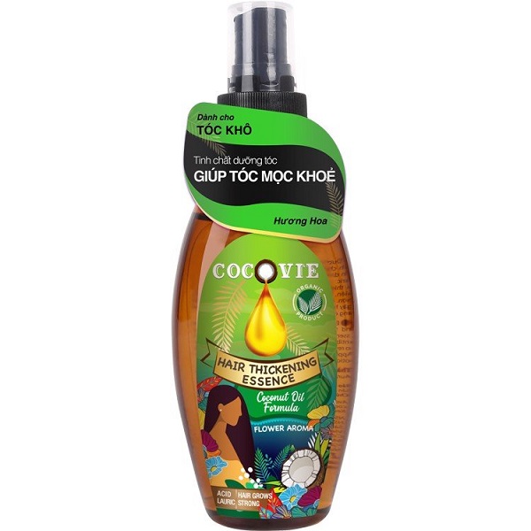 Cocovie- Tinh chất dưỡng tóc chắc khỏe được bổ sung vitamin E cùng acid lauric sẵn có trong dầu dừa, tương thích với protein cấu thành tóc, dễ thẩm thấu vào từng sợi tóc, khôi phục độ chắc khỏe, bóng mượt cho vùng tóc hư tổn do nhuộm, uốn hoặc ô nhiễm môi trường. Đảm bảo hiệu quả sử dụng ngay từ lần gội đầu tiên.