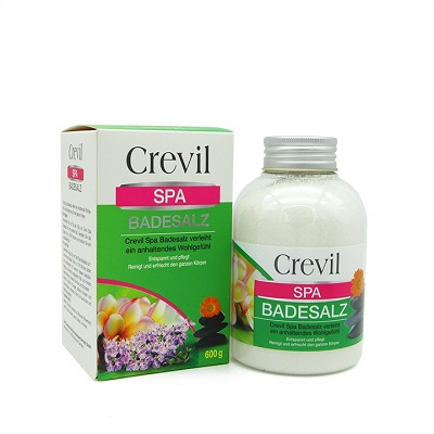 Muối tắm đẹp da, sạch mụn, tẩy da chết Crevil Spa Badesalz là sản phẩm thương hiệu của hãng dược phẩm – mỹ phẩm Crevil Đức. Thành phần được tinh chế từ muối khoáng biển chết đã được khoa học chứng minh có tác dụng tốt cho sức khoẻ và da. Được bào chế ở dạng tinh thể nhỏ li ti, tròn và mịn giúp cảm nhận rõ dễ chịu, không gây xước da, dễ tan và dễ thấm thấu.
