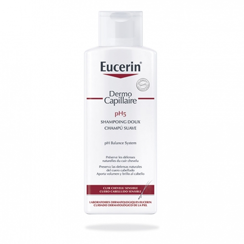Dầu gội cân bằng độ pH Eucerin Dermo Capillaire PH5 Mild Shampoo ứng dụng công thức sản xuất đặc biệt dành riêng cho da đầu nhạy cảm giúp duy trì độ pH tự nhiên, làm sạch tóc và da đầu, ngăn chặn tình trạng khô hay kích ứng, tăng cường khả năng bảo vệ tự nhiên của da đầu, giúp mang lại mái tóc bóng mượt, mềm mại và bồng bềnh. Khả năng cân bằng pH cho tóc của sản phẩm giúp tóc tránh được các tổn thương do nhiệt độ quá cao hoặc quá thấp, bệnh tật, căng thẳng, duy trì mái tóc khỏe đẹp dài lâu.