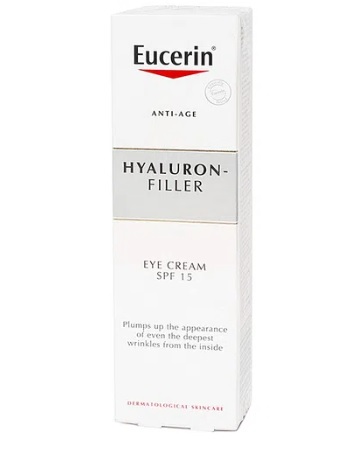 Eucerin Hyaluron Filler Eye Cream SPF15- Kem ngăn ngừa lão hóa vùng mắt giúp làm đầy và giảm quá trình lão hóa sớm, tránh làm sâu hơn các nếp nhăn vùng mắt, tăng cường quá trình sản xuất Hyaluronic Acid tự nhiên trong da.