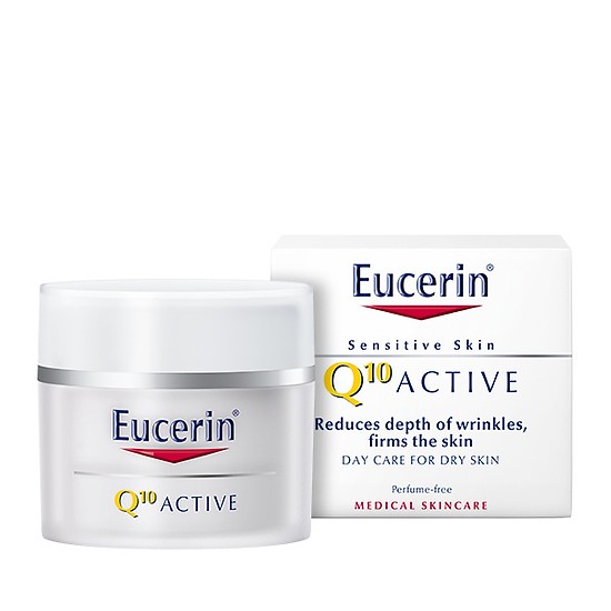 Kem dưỡng ngừa lão hóa ban ngày cho da nhạy cảm Eucerin Q10 Active Day Cream là sản phẩm nuôi dưỡng phục hồi da chống lại nếp nhăn dành cho da khô, nhạy cảm. Kem với kết cấu giàu ẩm giúp nuôi dưỡng da nhạy cảm và giảm các nếp nhăn, đường nhăn trong khi ngủ Q10 Active day Eucerin. Công thức với thành phần Coenzyme Q10 giúp tăng cường quá trình tái tạo da và chống lại tác hại của các gốc tự do.