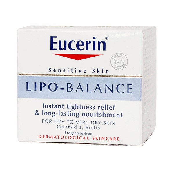 Eucerin Sensitive Skin Lipo Balance- Kem dưỡng ẩm da được thiết kế chuyên biệt để phục hồi khả năng cân bằng độ ẩm của lớp lipid biểu bì. Ngăn ngừa tình trạng mất nước, cho bạn làn da khỏe, mịn màng, giảm thiếu khả năng nhạy cảm quá mức cho da.