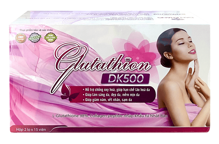 - Viên uống Glutathion DK500 giúp bổ sung L-Glutathione, Collagen và Vitamin E cho cơ thể.