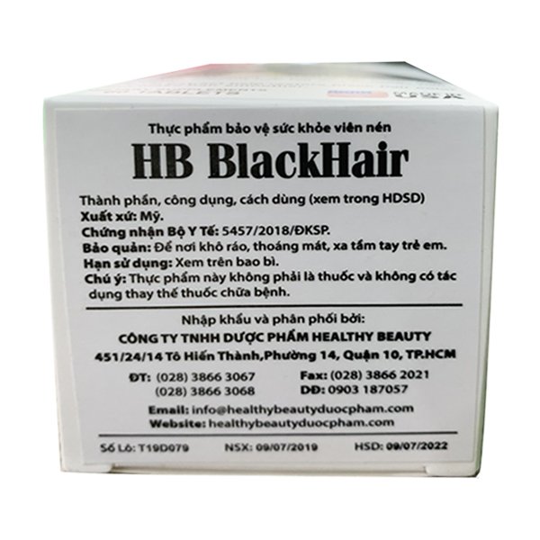 Healthy Beauty HB BlackHair- Viên uống chống bạc tóc, rụng tóc bổ sung các chất dinh dưỡng thiết yếu giúp tăng cường sức khỏe của tóc, giúp hồi sinh mái tóc của bạn, giúp tóc đen mượt, khỏe mạnh, ngăn chặn tình trạng tóc bạc sớm, và cải thiện chứng rụng tóc, đồng thời giúp thải độc do ảnh hưởng của các hóa chất sử dụng cho tóc (thuốc nhuộm, uốn, ép tóc,…).