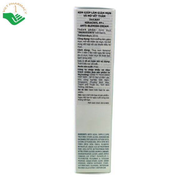 Thành phần của Keracnyl PP Anti- Blemish Soothing Cream – Kem dưỡng giảm mụn, làm mờ thâm mụn