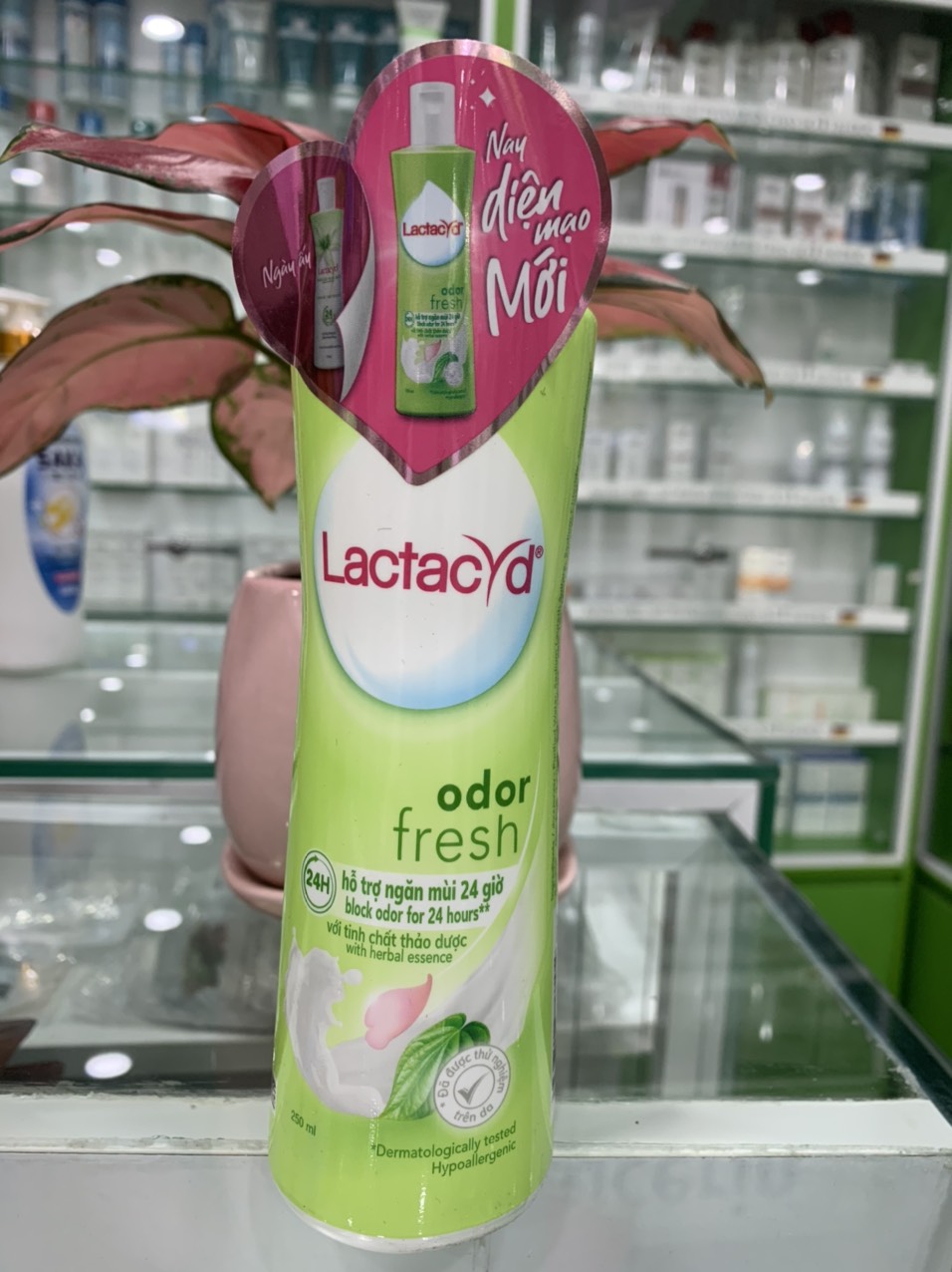 Lactacyd odor fresh- Dung dịch vệ sinh phụ nữ kháng khuẩn, kháng nấm, kháng viêm, chống kích ứng. Được kiểm nghiệm da liễu sử dụng an toàn. Bổ sung 10% dưỡng ẩm từ sữa với bộ tứ khóa dưỡng ẩm để giữ cho vùng kín luôn mềm mại.