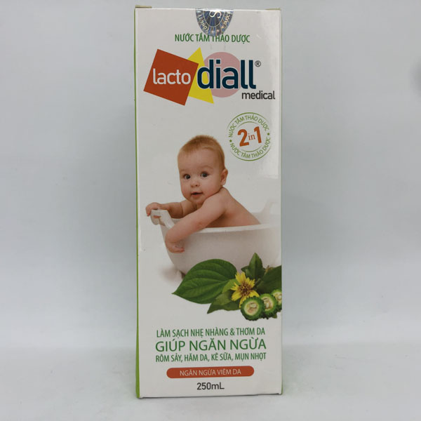 - Nước tắm thảo dược lactodiall medical dùng để tắm gội toàn thân cho trẻ sơ sinh, trẻ nhỏ và người lớn, giúp làm sạch da, làm dịu mặt da, góp phần ngăn ngừa và làm giảm rôm sẩy, mần ngứa, mụn nhọt, mề đay, … tạo cảm giác sảng khoái sau khi dùng với mùi thơm nhẹ nhàng và dễ chịu từ các loại tinh dầu.