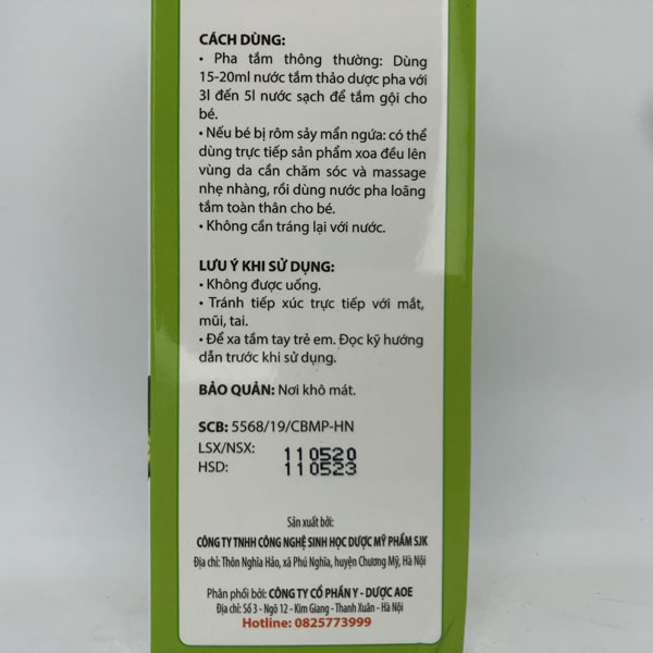 - Nếu bé bị rôm sẩy mẩn ngứa, có thể dùng trực tiếp sản phẩm xoa đều lên vùng da cần chăm sóc và massage nhẹ nhàng, rồi dùng nước pha loãng tắm toàn thân cho bé. Không cần tráng lại với nước.