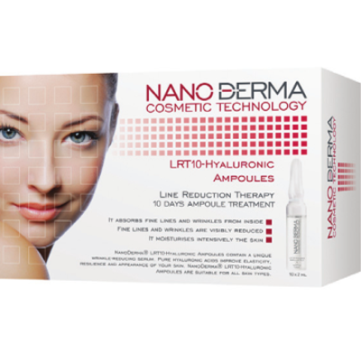 Tác dụng của Tinh chất trị nhăn, làm căng và sáng da Nano-Derma Lrt10 Hyaluronic Ampoules Tinh chất hyaluronic tinh khiết giúp phục hồi cấu trúc dưới da, làm đầy từ bên trong giúp da căng, sắc diện da sáng. Công thức độc đáo nhờ sự kết hợp của phân tử Hyaluron cao và phân tử Hyaluron thấp, cơ chế hoạt động kỳ diệu: