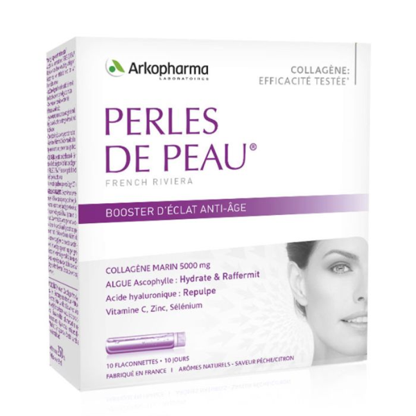 – Collagen Arkopharma Perles De Peau 10 lọ bổ sung lượng collagen thiếu hụt trong cơ thể, cải thiện kết cấu làn da.