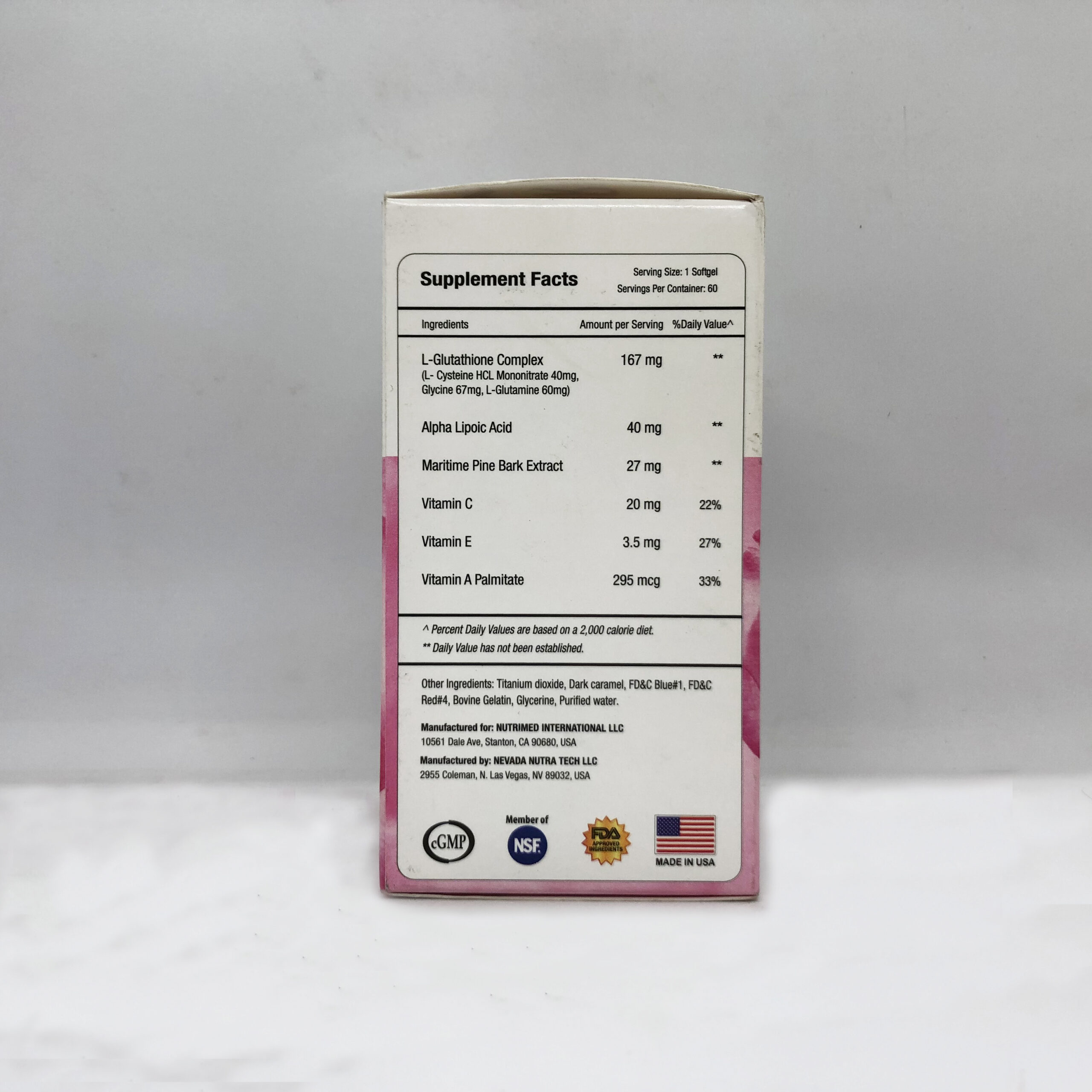 Nutrimed Glamour Whitening- Viên uống trắng da với công thức kết hợp độc đáo giữa L-Glutathione và thông đỏ giúp chị em tự tin hơn với làn da căng bóng, trắng sáng. Nutrimed Glamour Whitening có tác động toàn thân, dùng được cho cả nam và nữ từ 18 tuổi trở lên và người có làn da nám, sạm…