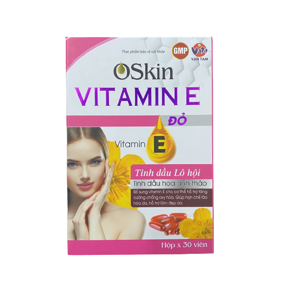 Công dụng Viên uống làm chậm lão hóa da Oskin Vitamin E đỏ