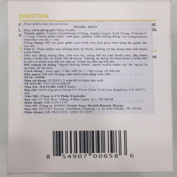 Pearl Skin- Viên uống trắng da hỗ trợ giúp giảm quá trình oxy hoá giúp làm sáng da, giảm lão hoá da.