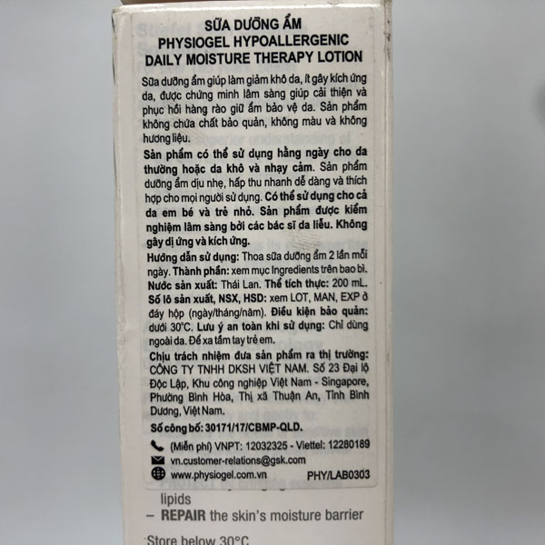 Physiogel Daily Moisture Therapy Body Lotion- Sữa dưỡng ẩm toàn thân giúp phục hồi hàng rào giữ ẩm bảo vệ da. Tăng cường độ ẩm cho da trong thời gian dài để bảo vệ da khỏi tình trạng khô và nhạy cảm, ít gây dị ứng.
