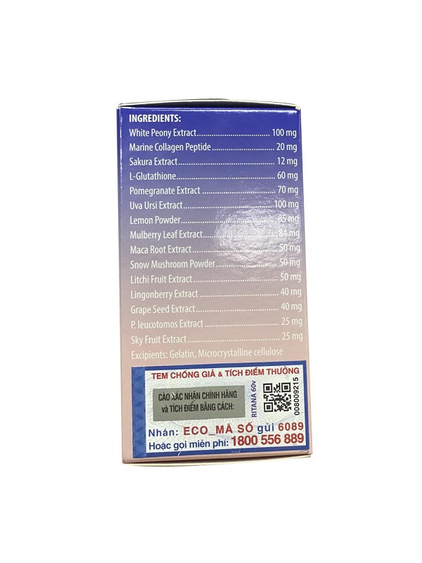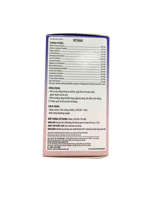 Thành phần Viên uống trắng da Ritana Skin Whitening