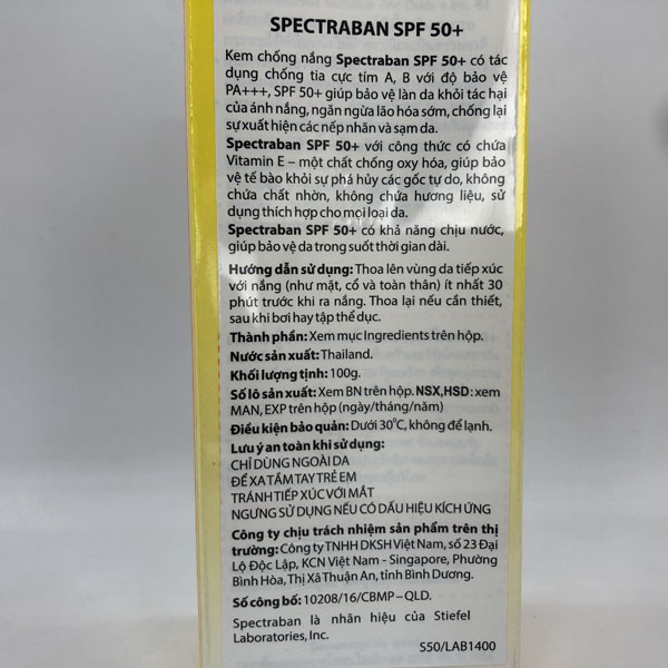Hướng dẫn sử dụng Kem chống nắng Spectraban Spf 50+