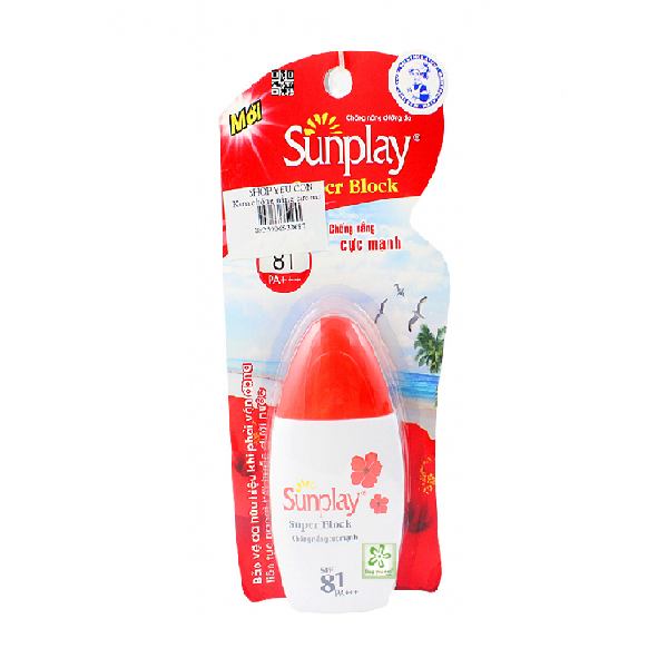 - Sữa chống nắng Sunplay Super Block với SPF81 chống tia UVB cực mạnh, PA ++++ tạo màng chắn tia UVA tối đa và bảo vệ da lên đến 16 giờ.