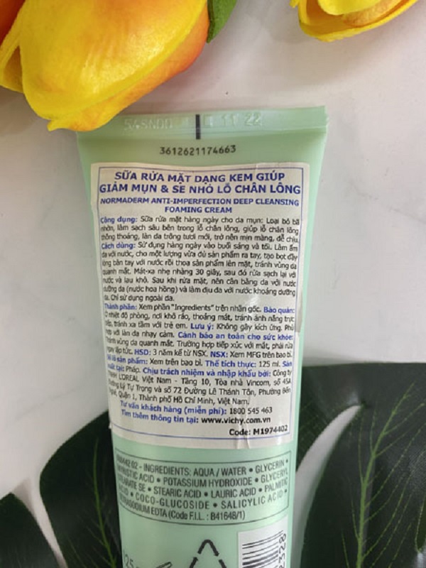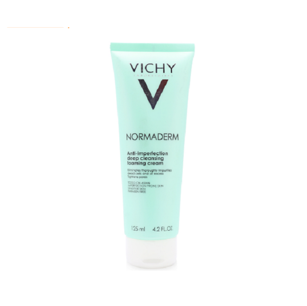 Sữa rửa mặt tạo bọt ngừa mụn se nhỏ lỗ chân lông Vichy Normaderm Deep Cleansing Foaming Cream làm sạch làn da hiệu quả với thành phần chứa Acid Salycilic được biết đến với khả năng ngừa mụn, nhẹ nhàng làm sạch và mang đến làn da mềm mại.