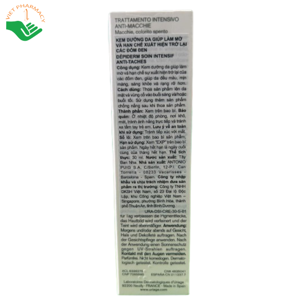 Uriage Dépiderm Soin Cible Anti-taches được biết đến rộng rãi với những tác động giúp chăm sóc và bảo vệ da chuyên sâu khỏi nám và tàn nhang…giúp cải thiện sắc tố làn da một cách toàn diện. Là một trong những loại dược mỹ phẩm được tin dùng hàng đầu tại Pháp và nhiều quốc gia lớn trên thế giới, Uriage Dépiderm còn mang đến những tác động giúp dưỡng da và ngăn ngừa nám tàn nhang quay lại hiệu quả.