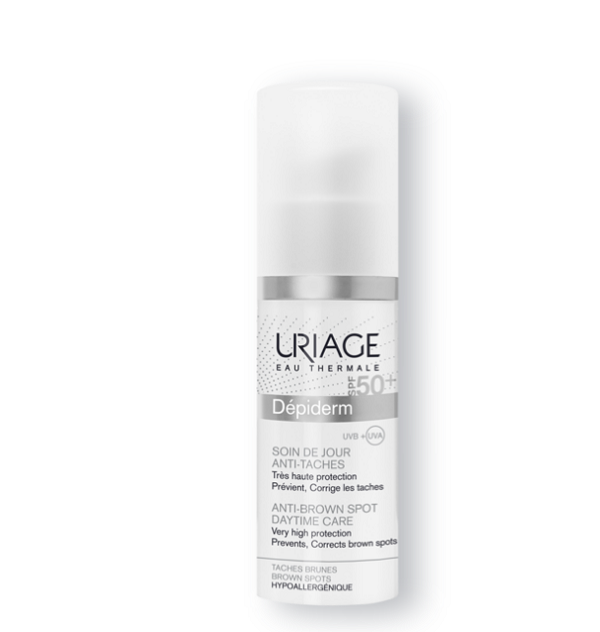 Kem ngăn ngừa đốm nâu, tàn nhang Uriage Depiderm SPF50 Soin De Jour Anti-Taches chăm sóc da ban ngày, ngăn ngừa đốm, nâu, tàn nhang, bảo vệ những vùng da được áp dụng các biện pháp can thiệp tới da (laser, mặt nạ hóa học…). Giảm đốm nâu do tia UV và ngăn không cho đốm nâu xuất hiện trở lại.