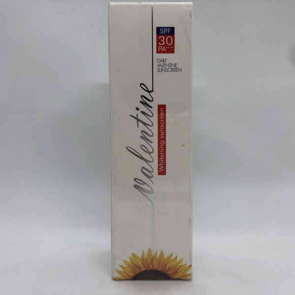 - Kem nền trang điểm Valentine Spf 30 PA ++ có tác dụng kép, vừa làm lớp trang điểm, vừa dưỡng trắng da và chống nắng hiệu quả, bảo vệ da khỏi tác hại của tia tử ngoại UVA và UVB suốt khoảng 7 giờ.