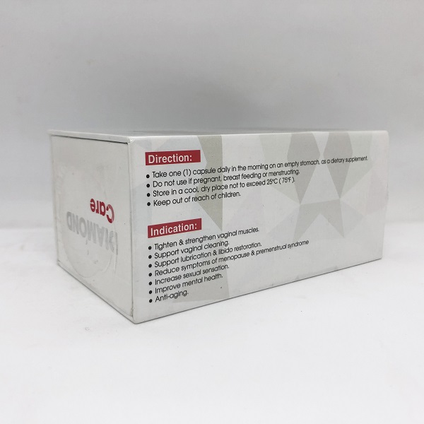 Viên uống se khít, làm hồng vùng kín Diamond Care là sự kết hợp của các thành phần thảo dược như: canxi, quả nhàu, nghệ, đương quy, rễ rắn đen là sản phẩm hỗ trợ sinh lý nữ, phụ hợp với những phụ nữ sau sinh có vùng kín bị giãn rộng, giảm ham muốn tình dục và khó đạt được cực khoái trong hoạt động tình dục do nồng độ estrogen trong cơ thể giảm.