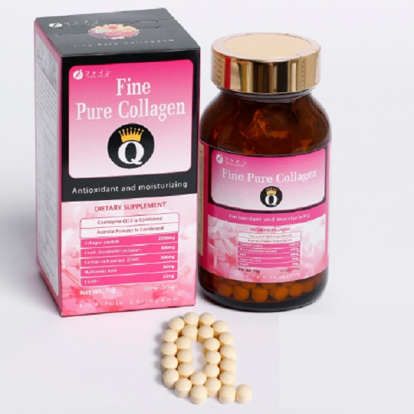 - Fine Pure Collagen Q giúp bổ sung collagen, Coenzyme Q10, Hyaluronic acid, Elastin và các vitamin giúp hạn chế quá trình lão hóa, giúp tăng tính đàn hồi, cải thiện và ngăn ngừa nếp nhăn, hạn chế vết thâm nám, giúp da trắng sáng đồng thời giúp tăng cường sức khỏe.