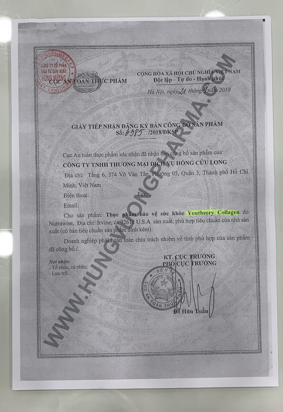 Số CBSP: 6385/2018/ĐKSP